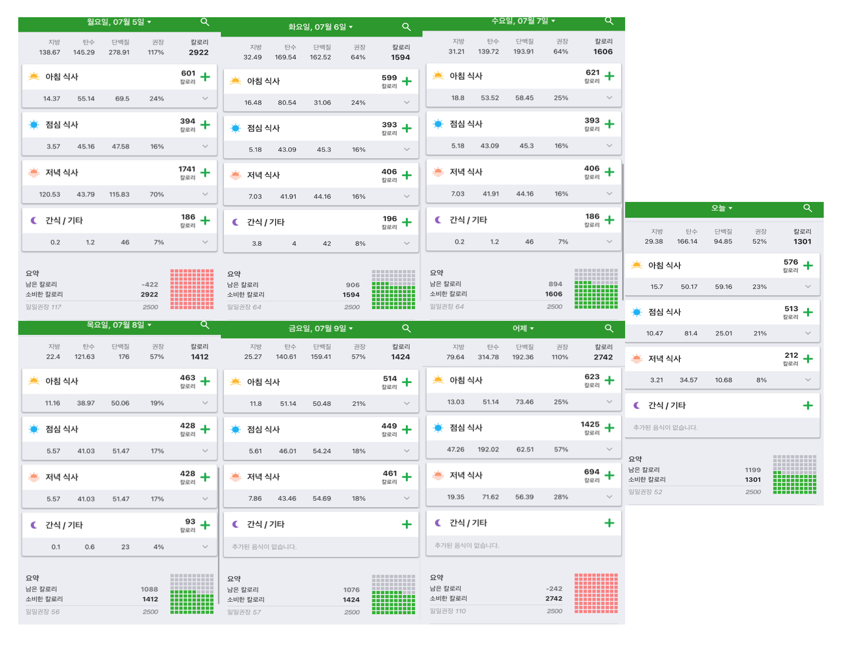 7월 2주차 식단기록표
