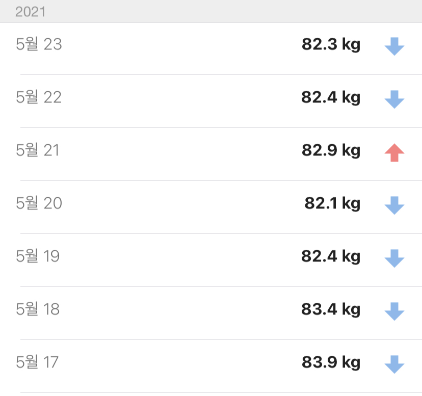 체중이 절대적인 척도는 될수없지만 당장에 매일매일 확인가능한건 체중뿐이라 ..