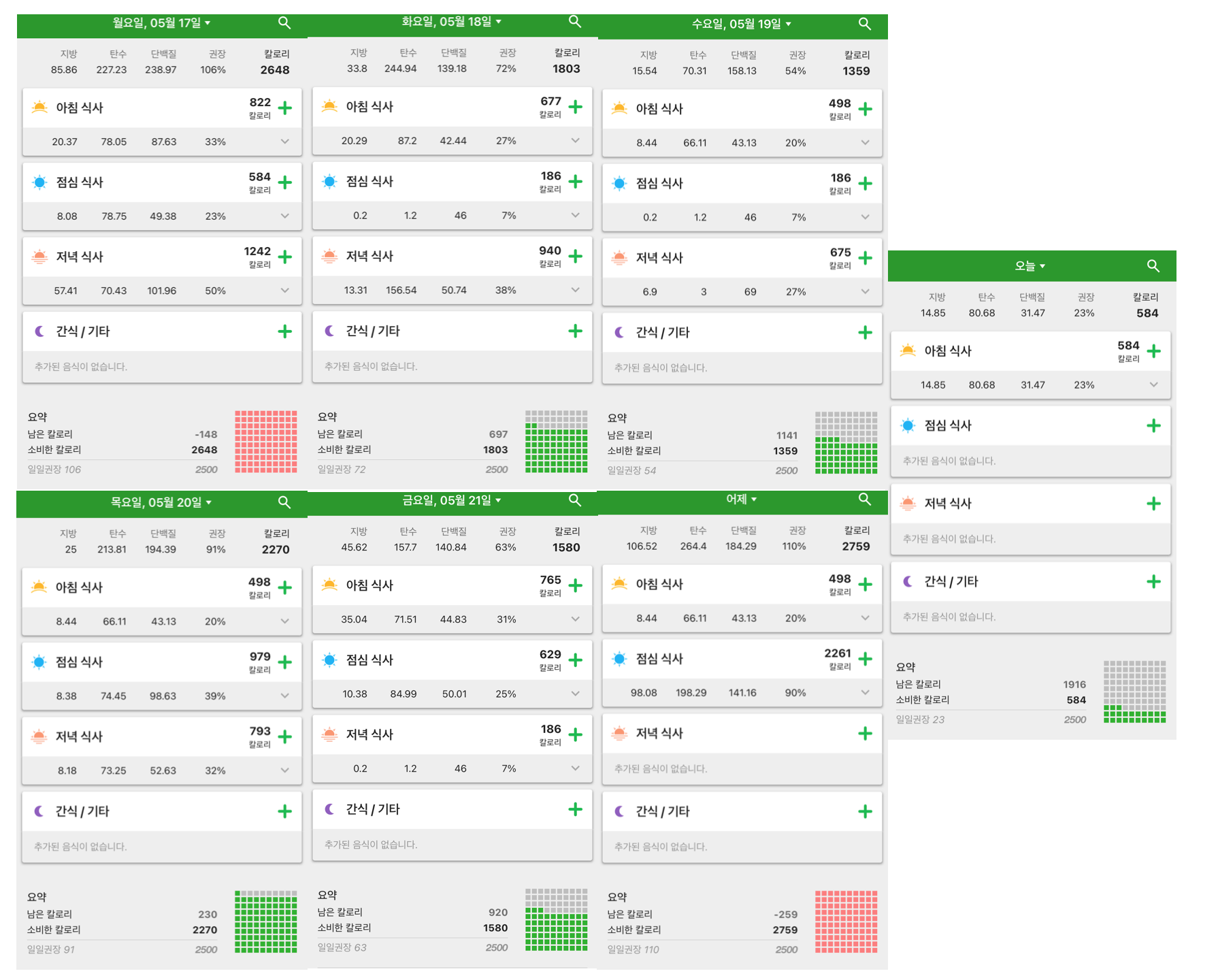 월요일 / 토요일 약속이있이서 저녁 점심에 많이 먹었다.