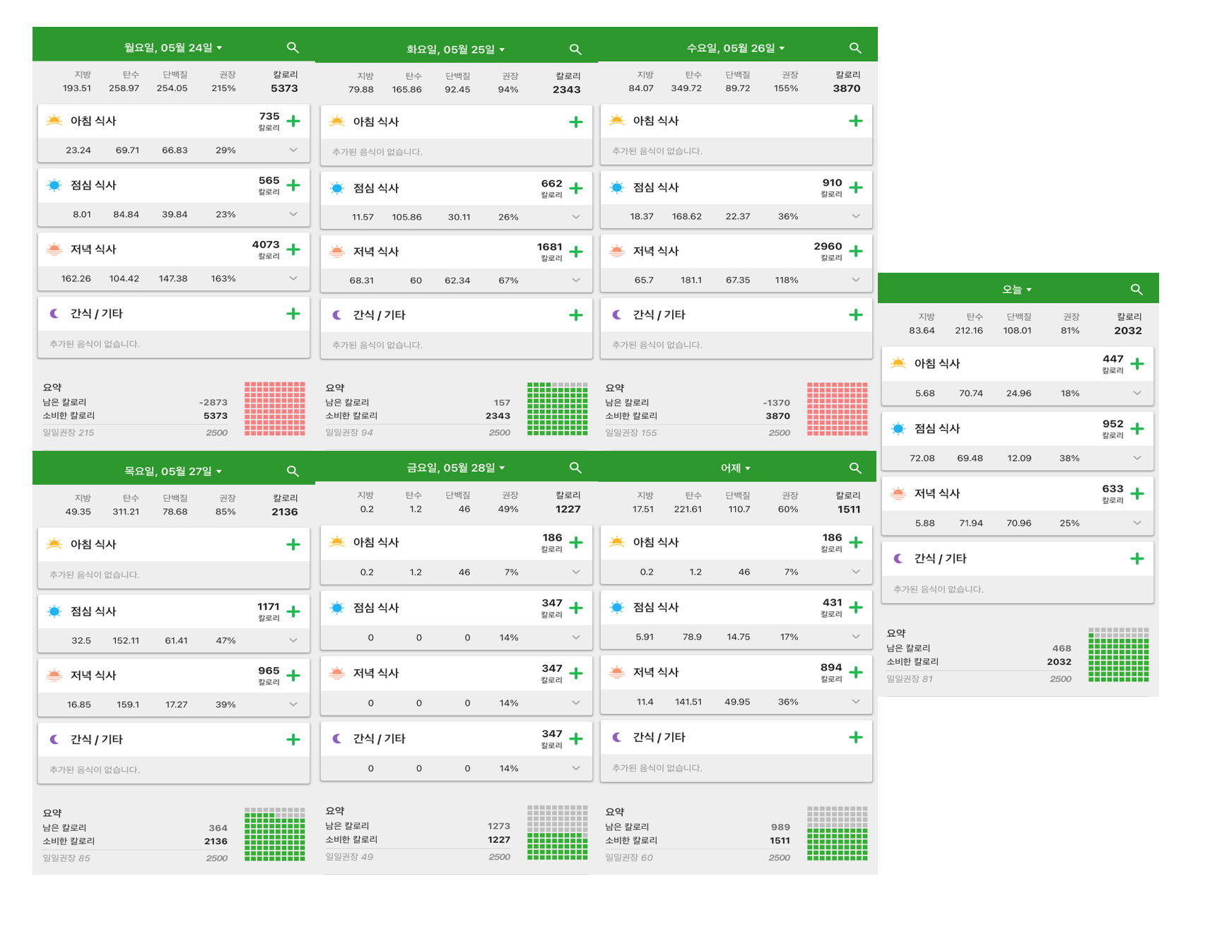 뭘먹었는지는 앱에 다 기록되어있으니 여기엔 크게 볼수있게만 정리하는거로